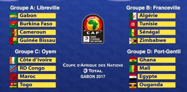La Coupe d’Afrique des Nations (CAN 2017) se tiendra au Gabon du 14 janvier au 5 février 2017 dans les villes de Oyem, Franceville, Lireville et Port-Gentil